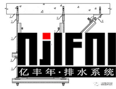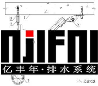 1-結(jié)構(gòu)體;2-抗震錨栓;3-抗震連接構(gòu)件;4-C型槽鋼 5-六角連接器;6-長螺桿;7-加勁裝置;8-管道 |